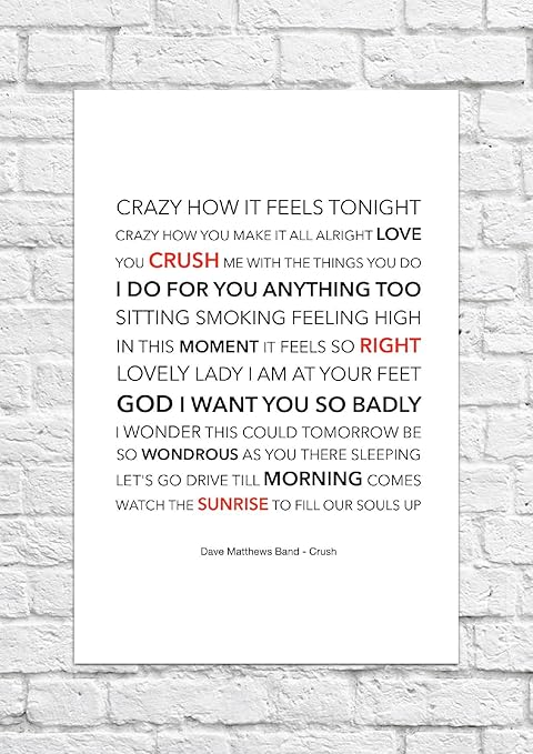 Dave Matthews Band Crush Heart Song Lyric Quote Print Red Heart Wall Art from cdn11.bigcommerce.com As the album version is over eight minutes in length, the song time was cut almost in half for radio airp. Maybe you would like to learn more about one of these? Search for dave matthews band crush at sprask. We did not find results for: Check out results for dave matthews band crush Check spelling or type a new query. Get tickets to see dave matthews band live from spring. Crush is a song by the dave matthews band, released as the third single from their album before these crowded streets.